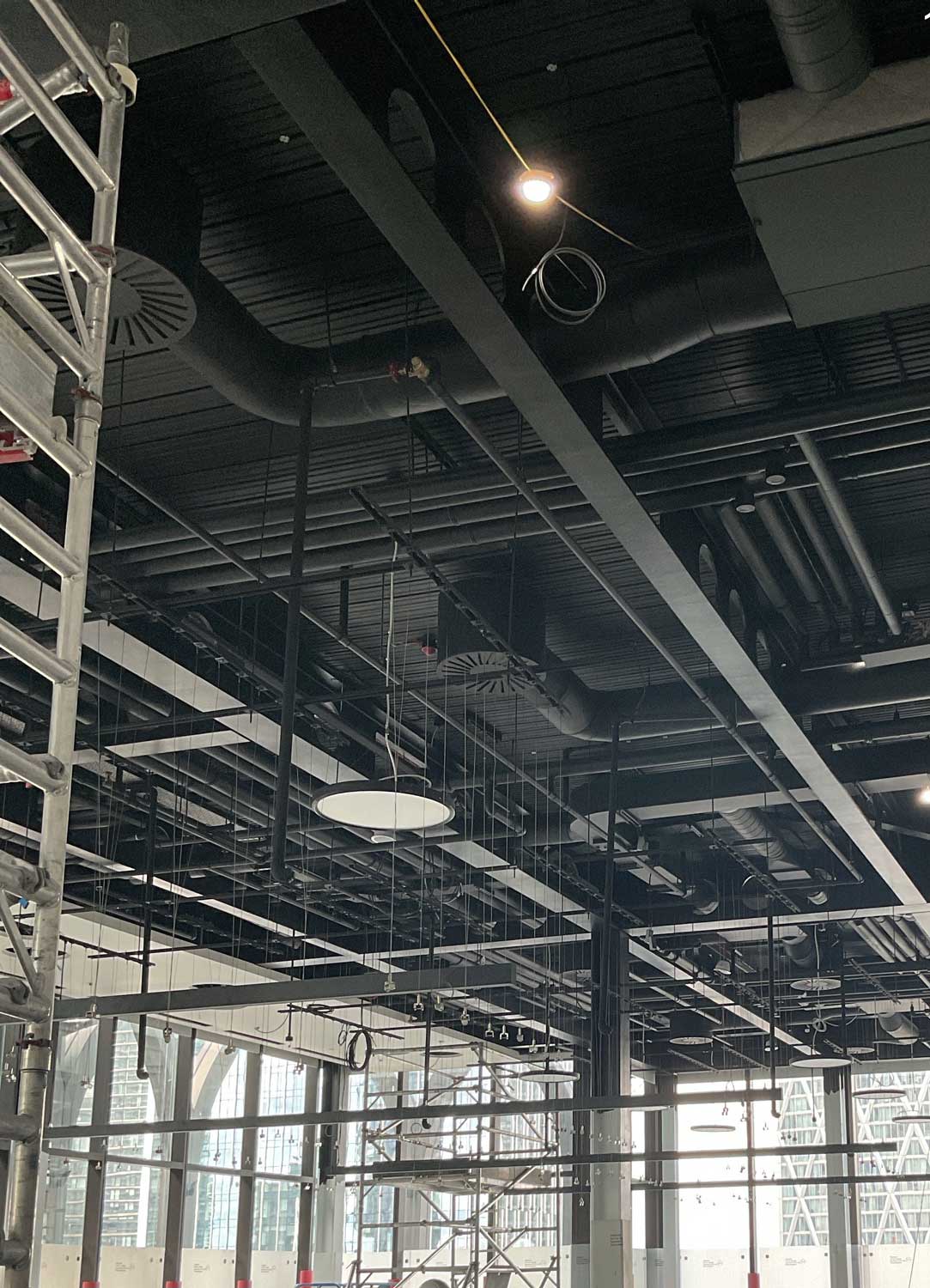 High-level exposed services on the building ceiling—like HVAC systems, pipes, ductwork, wiring, and other mechanical systems—is usually a critical yet often overlooked task. These areas demanded specialized cleaning methods to preserve aesthetic appeal, air quality, safety, and system efficiency, and CPS Cleaning expertly completed the task.